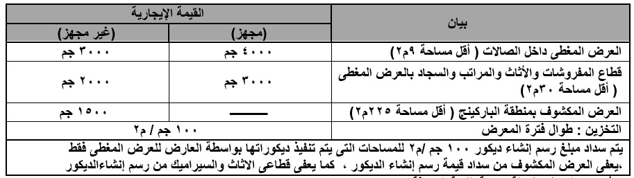 المساحة المطلوبــة ( ............... م2 )مجهز / غير مجهز للعرض المغطى - المساحة المطلوبــة ( ............... م2) للعرض المكشوف.